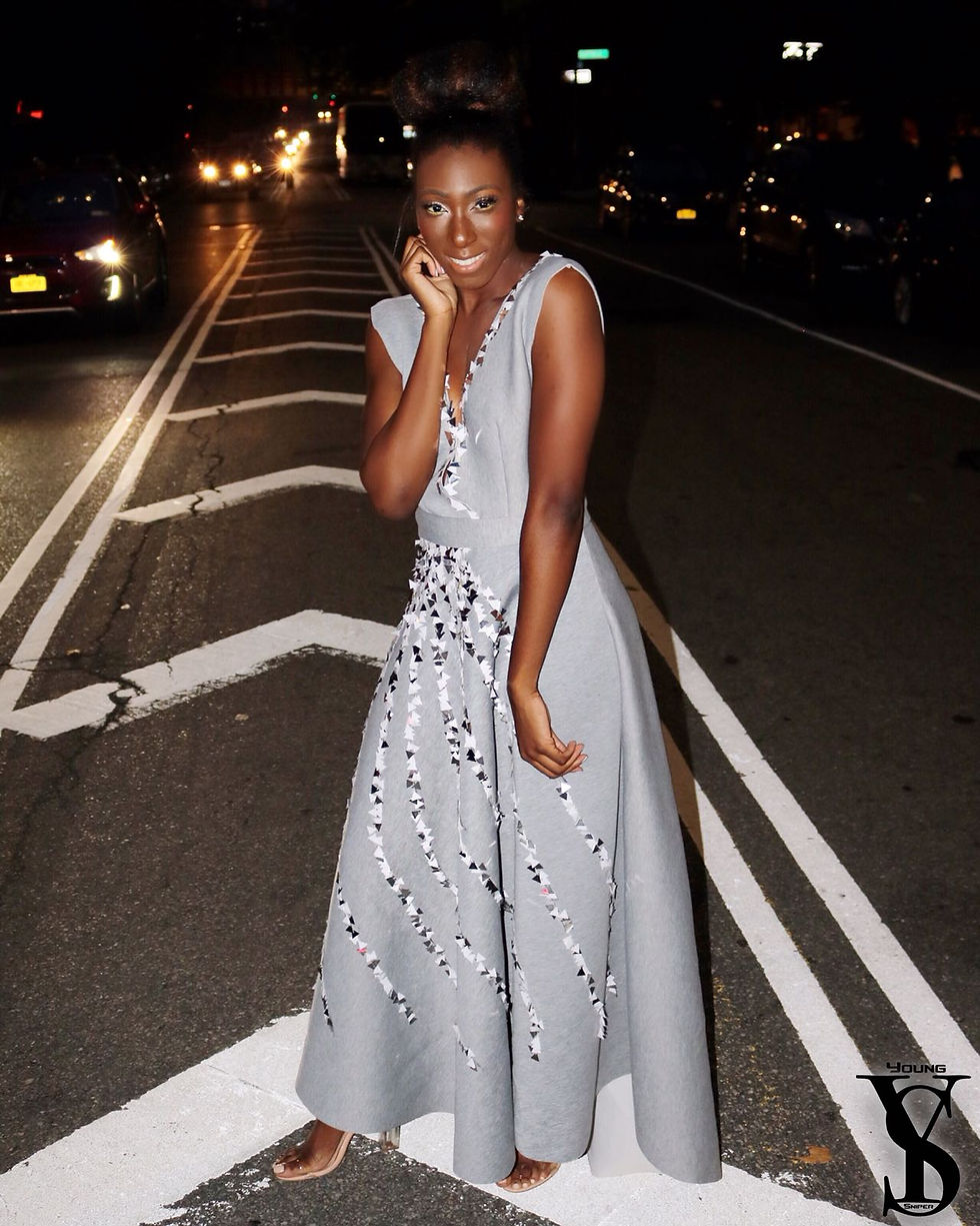 This look right here, created and designed by Stitched and Stoned, gave us an inside look at a time-warped 70's feel dress, but still elegant and modern. The color of ROYAL PURPLE (yeah...because blue isn't really like ROYAL like Purple. Purple IS the color of Royalty, so who thought of ROYAL BLUE?) against model @exn_madeline, contrasts beautifully. The angle of this photograph is also exquisitely thought of. That old-school; disco vibe certainly resonates. And sis pose is PERFECTION!